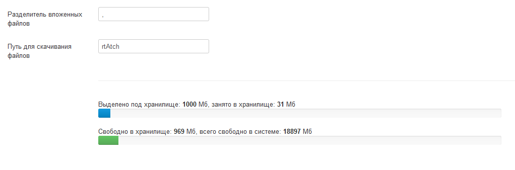 Добавлено визуальное отображение размера хранилища на сайте, а также его соотношение к свободному месту во всей системе.